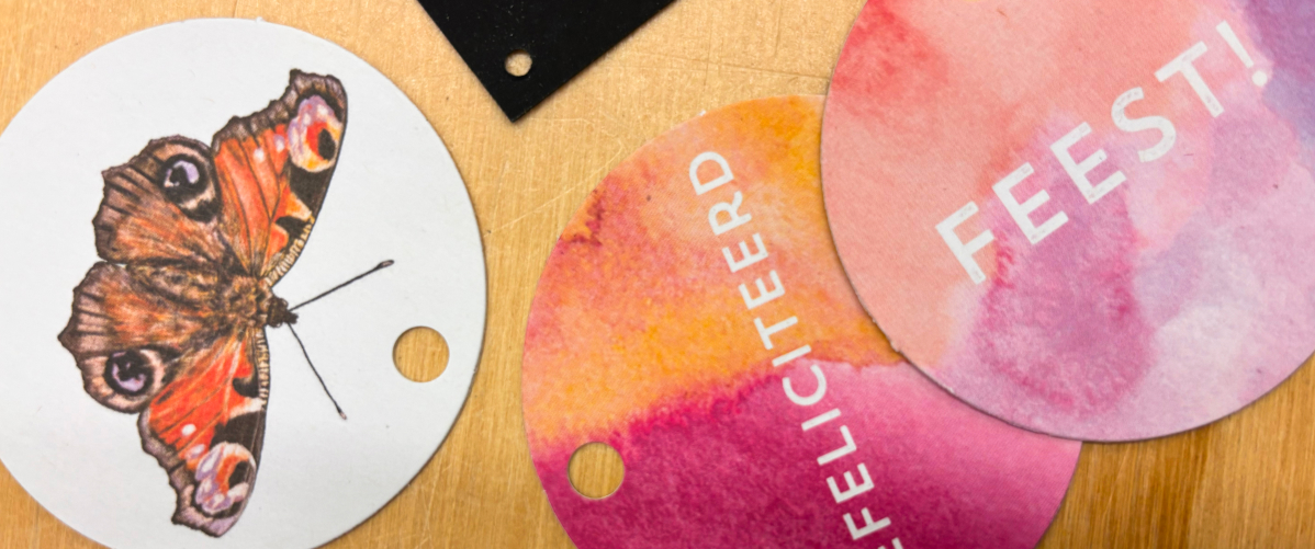De optie boorgaten wordt aangeboden bij diverse producten in onze webshop. Je kan kiezen voor 1 boorgat van 3 of 6 mm om je drukwerk straks als label te bevestigen aan je product. In dit geval kan je in de opmerking aangeven waar je het boorgat precies wil. Optioneel kan je een extra bestand opladen met plaatsaanduiding boorgat.